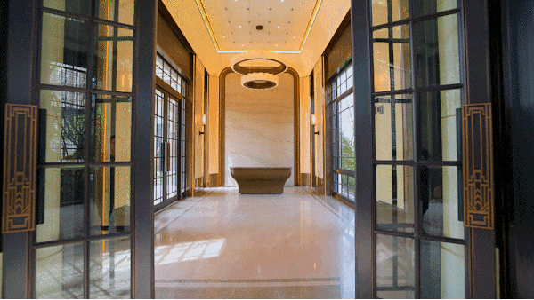 这几乎是一个看不到曲角的样板房。皮革的细腻质感、木饰面的温润纹理、石材的沉稳大气,建立色彩递朝上进步质感对比的视觉条理,
