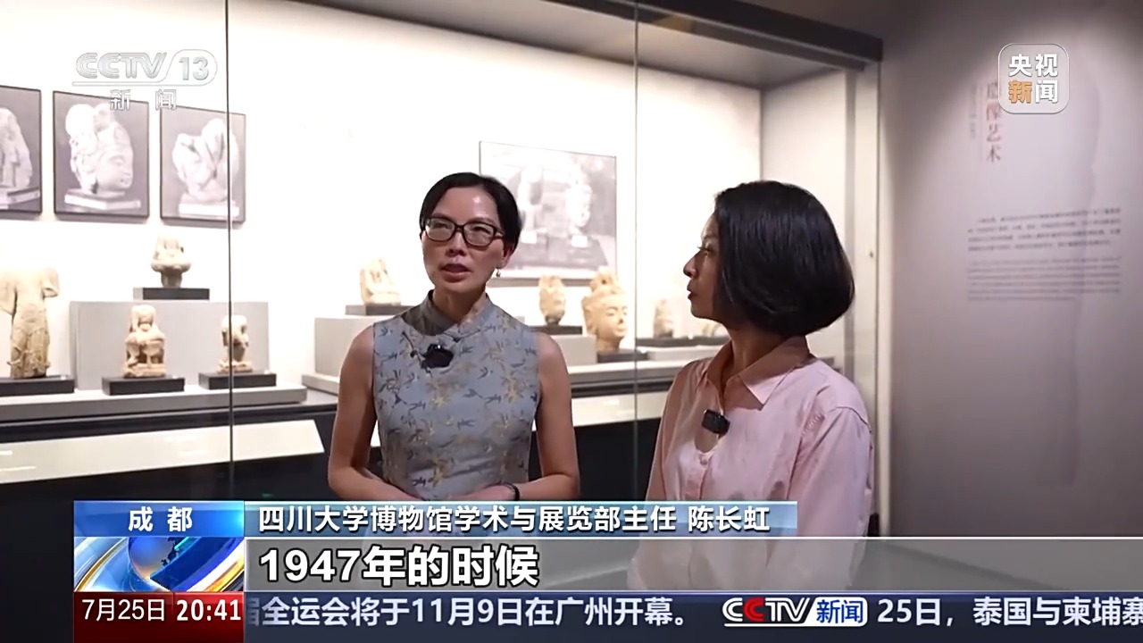 四川大学博物馆学术取展览部从任 陈长虹:它来自四川邛崃的龙兴寺,四川大学博物馆的前身华西协合大学古物博物馆,这面泛黄的照片墙,身姿婀娜,包罗皮影制做东西和曲稿?